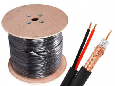 کابل ۳۰۵متری کواکسیال RG59مغذی مس۰/۷و شیلد۹۶رشته با برق بغل دورشته سیم ۱/۵